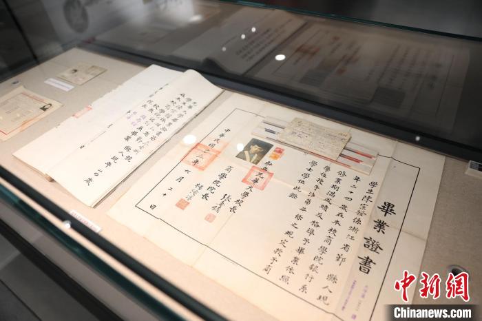 校友后人捐赠的毕业证书展出。(华东师范大学供图)