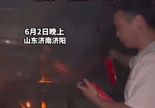 6月2日,山东济南。一大卡车在路边起火,由此开车经过的王德智在发现火情后果断停车,从车里取出灭火器冲到现场救火,在发现火情没有完全控制后,又跑向附近200米左右的加油站求援,并带回两个灭火器继续灭火,最终成功将其扑灭。