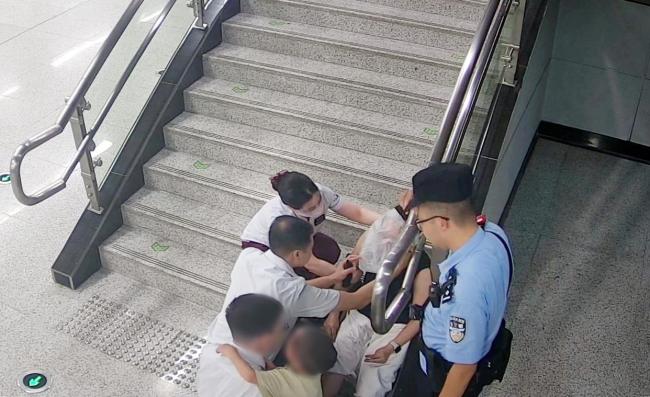 救助过程中,张莹持续安抚乘客情绪,并按摩其手臂以缓解僵硬,驻站民警则安抚其家属和哭闹的小孩。约3分钟后,乘客症状明显好转,双手也能轻微活动。工作人员继续陪伴交流,并帮助回吸二氧化碳。又过了3分钟,刘刚龙确认乘客无碍后,搀扶她坐上轮椅,推至C口通道处休息。