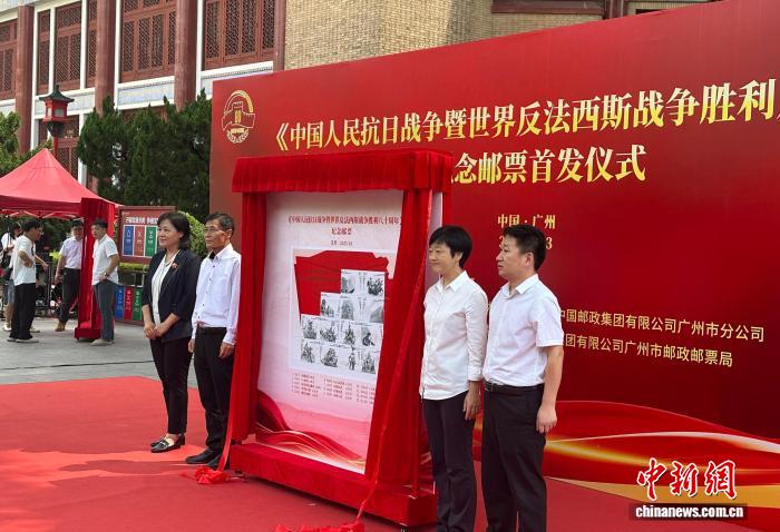 中新网广州9月3日电 (记者 程景伟)《中国人民抗日战争暨世界反法西斯战争胜利八十周年》纪念邮票3日在广州中山纪念堂首发。