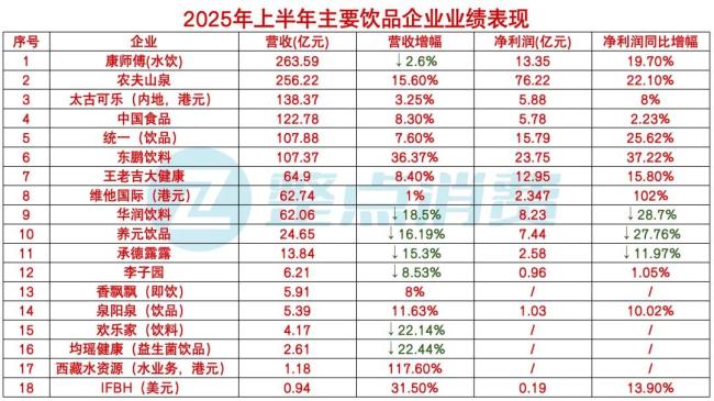 通过梳理18家饮品相关的上市企业上半年财报显示,其中,有11家企业都实现了同比增长;而在净利润方面,在可类比的14家企业中,只有华润饮料、养元饮品和承德露露净利润呈现下滑态势。