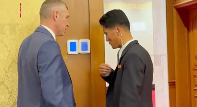 俄朝安保人员交流用丰富手势比划。普京与金正恩会晤,现场俄罗斯朝鲜安保人员,无需翻译用手势交流!