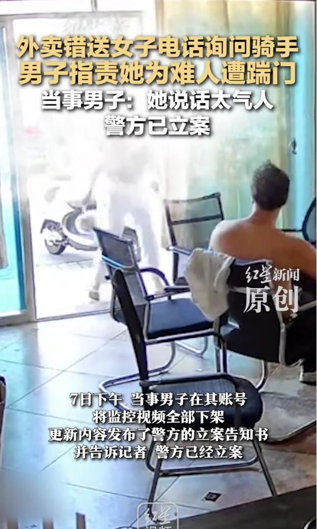 7日,该男子表示,此前经常有骑手将餐送错至隔壁,但这次女子说话太过分,他绝不接受和解,其店铺门的受损情况需由物价局评估。当天下午,男子在其账号上将监控视频全部下架,并更新了警方的立案告知书。当地派出所工作人员确认已接到报警,但案件具体情况不便透露。