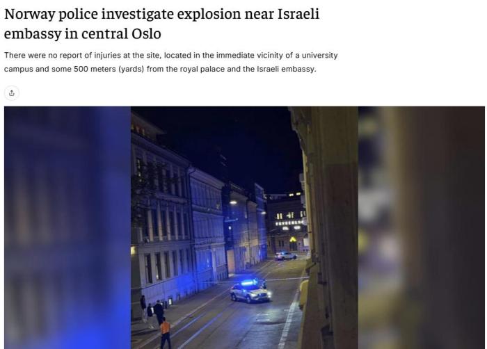 以色列驻挪威大使馆附近发生爆炸 已有一人被捕