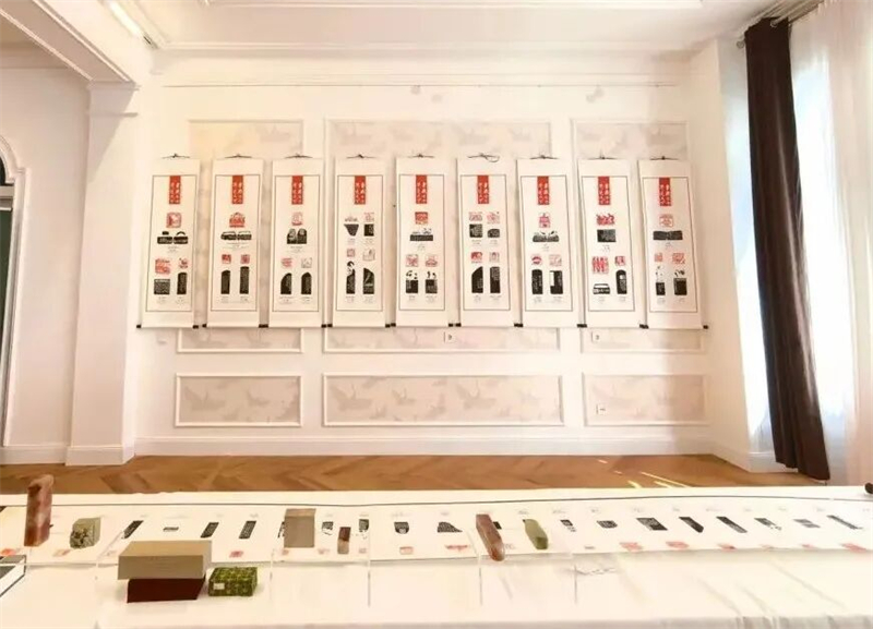 作为本次文旅交流活动的亮点之一,为期一个月的“书藏古今,港通天下”宁波图形印(匈牙利)主题特展同步启幕。墨色与朱红在宣纸上交织的艺术张力,为布达佩斯注入了浓郁东方文化气息,也让匈牙利民众得以直观感受东方美学的独特魅力。特展以“图形印”这一承载千年文脉的中国传统艺术为纽带,精心划分四大板块,层层递进铺展文化对话的画卷。