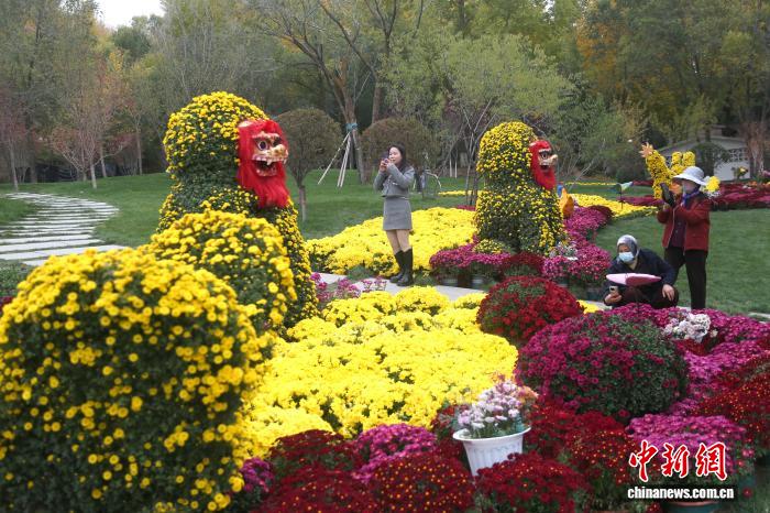 10月16日,市民在青海省西宁植物园内赏景游玩。随着气温不断降低,西宁市彩叶树木层林尽染,吸引不少市民前来赏秋。张忠苹 摄