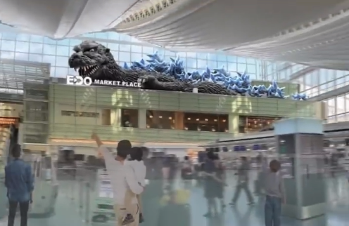 此外,哥斯拉及其他在电影中出现的怪兽模型还将出现在航站楼二楼到达大厅的信息柜台上方。2023年电影《哥斯拉:消失的一课》中的哥斯拉雕像也将放置在到达大厅。报道称,这些模型将展示至2026年12月。