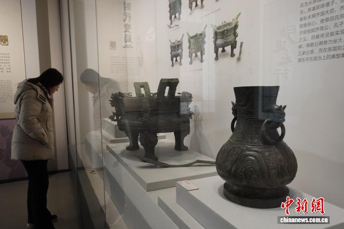 图为展出的春秋时期七鼎六簋青铜器。中新社记者 韩章云 摄
