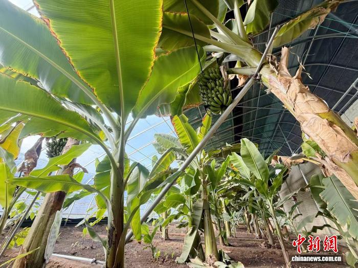 图为乌拉特后旗国际农业博览园的香蕉长势喜人。阿拉腾苏布达 摄