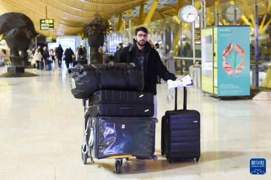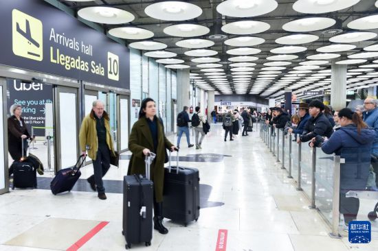 1月15日,旅客抵达西班牙马德里巴拉哈斯机场。新华社发(古斯塔沃·巴连特摄)