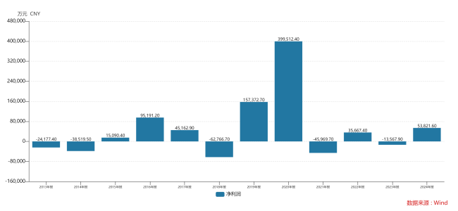 Wind显示,自2013年起,中粮家佳康盈利未超过3年。2013年、2014年、2018年、2021年、2023年,中粮家佳康分别亏损2.42亿元、3.85亿元、6.28亿元、4.6亿元、1.36亿元,累计亏损达18.51亿元。