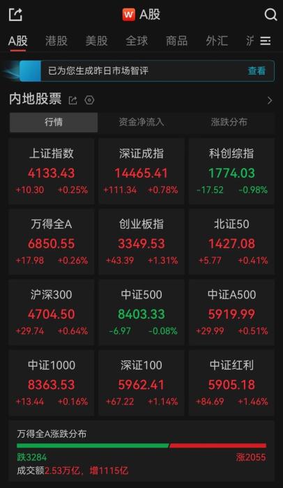 A股收评:三大指数集体收涨,超3200只个股飘绿