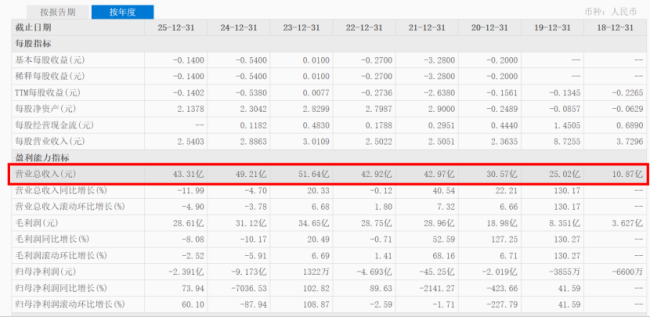 从奈雪的茶上市以来的业绩轨迹来看,其营收规模在2023年达到峰值51.64亿元后,连续两年出现收缩。财报数据显示,2021年上市当年,奈雪的茶实现营收42.97亿元;2022年营收微降至42.92亿元;2023年营收迅速攀升至51.64亿元,创下上市以来营收最高纪录;2024年营收回落至49.21亿元;2025年,公司实现总营收43.31亿元,较2024年同比下滑11.99%,较2023年的峰值水平减少16.13%。