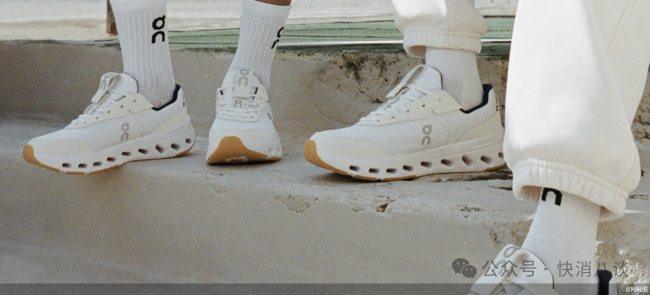 昂跑正在中产群体中迅速打开品牌的认可度。在多个社交平台,精英人士、商务人士脚踏昂跑成为日常,而昂跑在日常穿搭、上班通勤的穿着率也在不断提升。相较专业运动跑鞋的定位,昂跑轻奢高端、时尚、舒适的定位更出圈。凭借这些定位,昂跑快速在中国的中产群体中找到圈层认同,而非跑圈。昂跑一度与Lululemon、始祖鸟并列“中产三宝”阵营,也有消费者调侃其为“中产足力健”。在业界看来,这种营销让昂跑跑鞋的专业性被稀释。