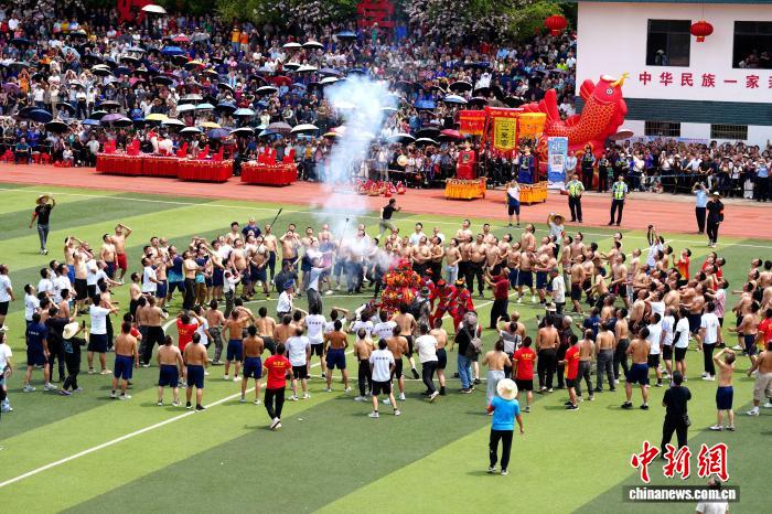 中新网柳州4月20日电(龚普康 梁秀明 杨晓雷)4月19日,“潮起三月三·最炫侗乡情”古宜镇第156届花炮节活动在广西柳州市三江侗族自治县举办,当地以民俗巡游、非遗展演、竞抢花炮等丰富形式演绎侗乡多彩风情,吸引数万名民众及游客前来体验“三月三”民俗盛宴。