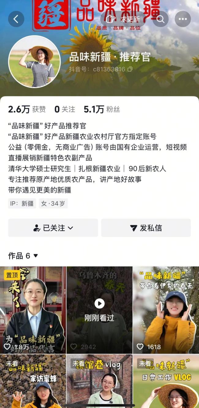 接棒贺娇龙后,清华毕业生发声 专注新疆农特产推广