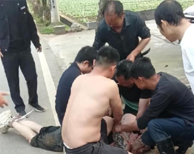曾凡林今年69岁。4月11日清晨,他在嘉禾县普满乡曾家村的一个钢筋店附近遇到一名行为诡异的男子,该男子赤裸上身布满文身。同行的还有一名女子,她走进一位村民家中借手机。由于村民看到男子异常举动,便提醒女子报警。但话音未落,男子便上前暴打女村民,被打村民的家人见状上前制止,三人合力才将男子赶出家门。然而,男子并未停止伤害,他先后拦截了几辆车,并最终成功拦截了一名骑摩托车的女子,坐上后座用双手死死箍住她的颈部。曾凡林上前紧紧抱住男子,在场的其他几名男子一同将这名男子按倒在地。
