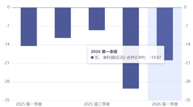 2025年分季度数据显示,公司前三季度亏损逐季收窄,第一季度亏损14.31亿元,第二季度亏损11.39亿元,第三季度亏损8.34亿元,但第四季度骤然恶化至亏损30.16亿元。
