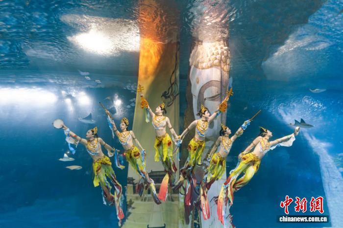 非遗水下秀《敦煌飞天》表演现场。广州正佳极地海洋世界 供图