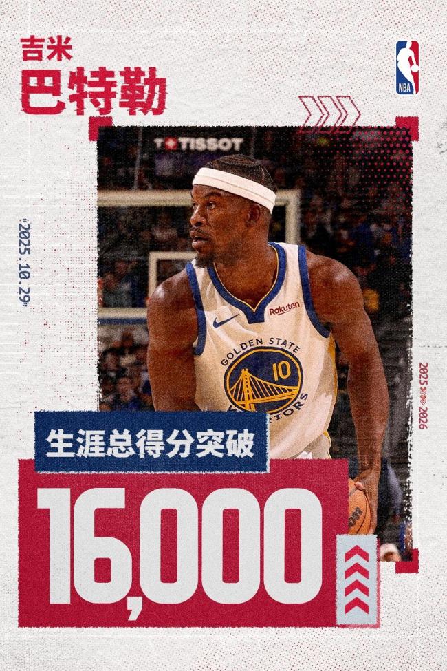 巴特勒生涯得分突破16000分大关 跻身现役前列