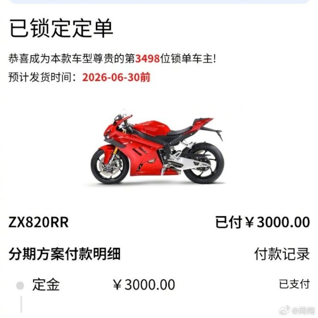 张雪机车夺冠车型要等三个月提车 订单激增推延交付