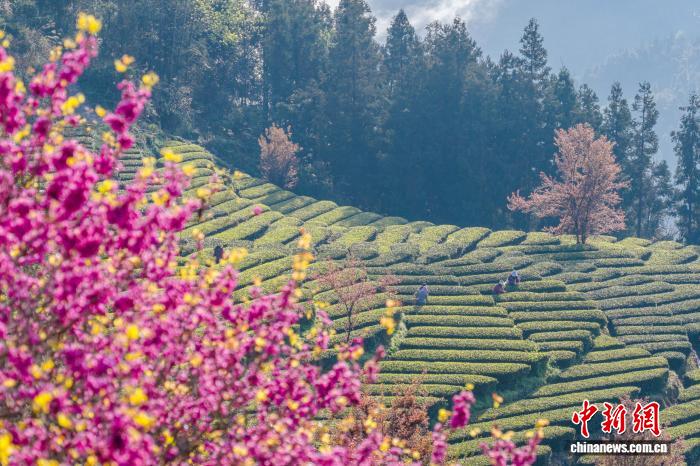 湖北恩施:茶山叠翠 茶农“画”中采春茶