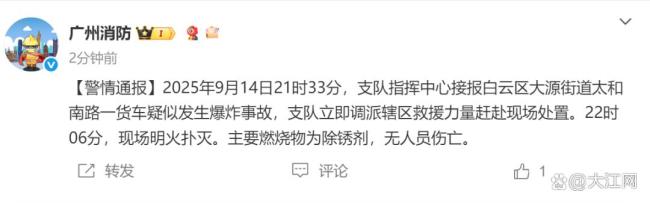 9月14日21时40分许,广州市白云区和乐路与太和中路交叉口发生一起车辆起火事件。现场消防人员迅速到场,拉起警戒线并疏散了周边人群。起火车辆不断冒出火光,并伴有爆炸声