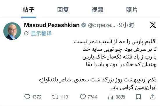 波斯大地不因世间的苦难而悲伤,只要有神荫如你般笼罩其上。哦,主啊,请从风暴中守护这片土地——只要土地长存,风暴亦将永恒。这是古波斯诗人萨迪的诗句,在美伊停火协议即将结束前,伊朗总统佩泽希齐扬在社交平台上引用了这首诗