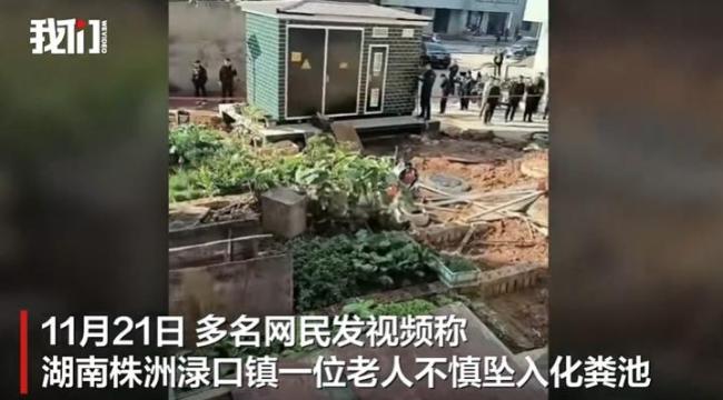 11月21日,多名网民发布视频称,湖南株洲渌口镇一位老人不慎坠入化粪池。目击者表示,事发后警方和消防部门迅速赶到现场进行搜救。当天中午,渌口镇应急办确认已经找到坠入化粪池的老人。据渌口镇政府值班室消息,老人不幸身亡,遗体已被打捞出来