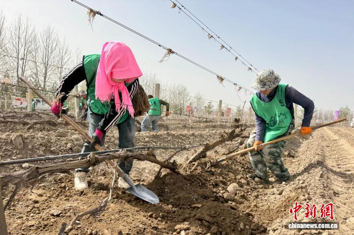 中新社银川4月3日电 (记者 李佩珊)春风拂过贺兰山东麓,藤芽初绽,酒香渐浓。4月3日,“春醒藤启·醉美金山——2026宁夏银川市贺兰县金山产区展藤节暨春耕开园盛典”在沃尔丰酒庄启幕,当地酒庄从业者、市民游客齐聚