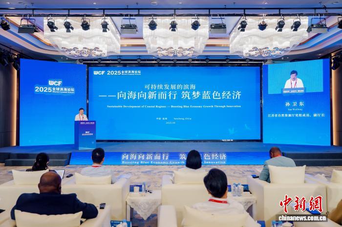 中新网盐城9月25日电(顾名筛)24日下午,由江苏省自然资源厅、盐城市人民政府、江苏省林业局、国家海洋信息中心共同主办的海洋经济高质量发展论坛在江苏盐城举行。中外嘉宾围绕“可持续发展的滨海——向海向新而行 筑